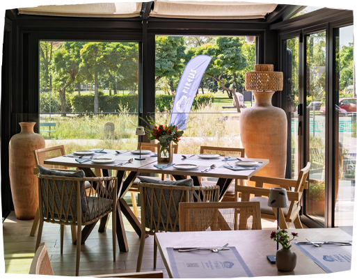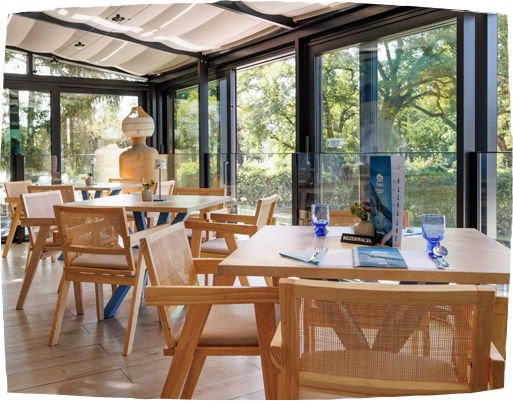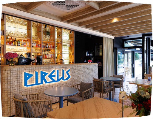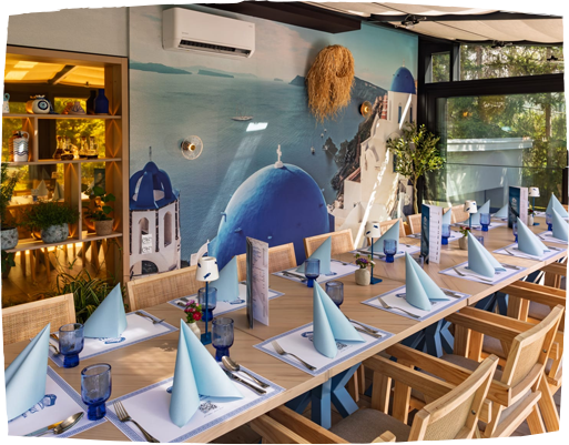 Nasza restauracja ma swoją wieloletnią tradycję, kiedyś mieściła się tutaj kawiarnia Wrzos a po niej restauracja Oliwka. Wnętrze przeszło kilka remontów – a ten ostatni w maju 2025 r. całkowicie odmienił nasze wnętrze. Obecnie mamy zaszczyt zaprosić Państwa do nowoczesnej elegancji, w której nie zabrakło charakterystycznych dla Grecji elementów wystroju. Nowością jest klimatyzowany całoroczny taras na którym można w niezwykłym wystroju zjeść obiad czy przygotować kameralną uroczystość.